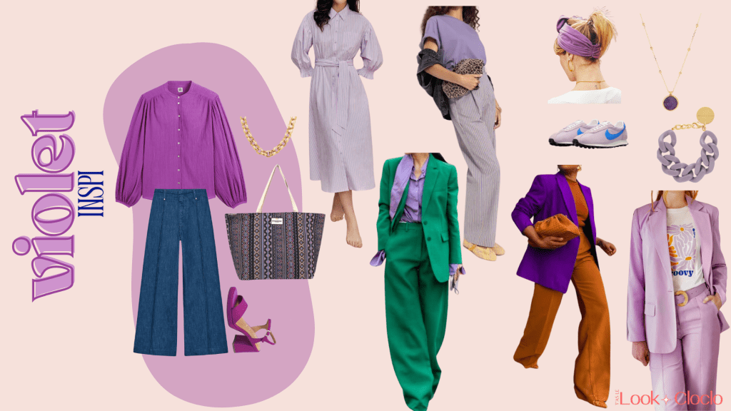 💡 Astuce : le violet fonctionne à merveille en monochrome, mais tu peux aussi le casser avec des motifs ou des matières naturelles pour un rendu plus décontracté.