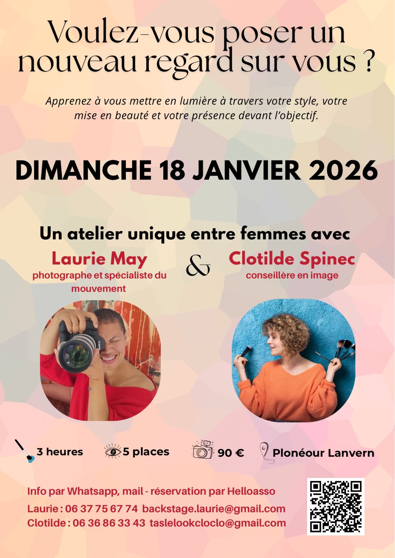 Le 18 janvier 2026, nous unissons nos expertises, Laurie May, photographe & spécialiste du mouvement, et moi, Clotilde Spinec, conseillère en image, pour proposer un atelier de 3 heures pensé pour toutes les femmes qui veulent :